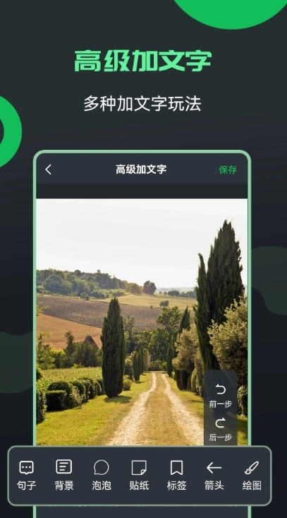 图片文字编辑器是一款简单实用的修图工具,具备强大的编辑功能,主要用于图片修改。无论是添加文字、长图拼接,还是裁剪创作,都能在这里轻松完成。另外,软件还拥有丰富的优质素材库供用户选择,快来尝试打造你的艺术大片吧!