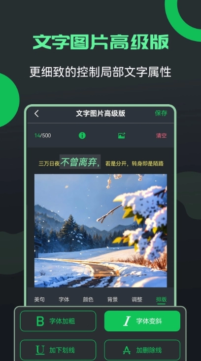 3、个性化定制:无论是字体挑选还是排版设计,都可依据你的偏好进行量身定制,塑造独属于你的专属风格,使每一张图片都成为别具一格的艺术创作。
