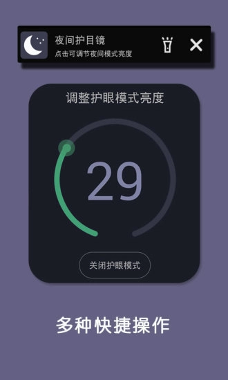 夜间护目镜是一款专门为夜间使用设计的护眼应用,致力于保护您的眼睛免受伤害。借助智能算法,它能在设备最低亮度的基础上进一步调低屏幕亮度,让您即使处于完全黑暗的环境中,也能舒适使用设备而不会感到眼部不适。该应用除了提供减少蓝光的夜间模式外,还拥有抗疲劳模式、减蓝光护眼模式和冷色调模式等多种实用功能,从多方面呵护您的视觉健康。这款软件不仅注重用户的眼睛健康,还兼顾了设备的电池寿命。通过优化屏幕背光,夜间护目镜有助于设备更节能,延长电池使用时间,尤其是在电量不足时,这一优势更为重要。