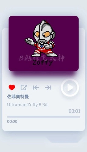 奥特曼8Bit音乐盒子是B站UP主“穆飞大神”的自制作品,里面收录了初代、赛文、杰克、佐菲等多位奥特曼的主题曲,所有曲目都采用经典的8Bit像素风格编曲。目前所有音乐都支持免费收听和分享,感兴趣的奥特曼粉丝们可别错过啦!