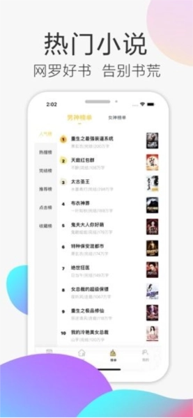 1、甜瓜小说平台设有各类排行榜,不同类型的榜单均依据书籍评分排序,评分越高,排名越靠前。