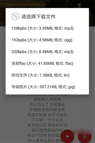 3、接着点击进入歌曲页面,你可以选择试听,也可以选择下载——选择下载的话会有不同格式和大小的文件供你挑选,你可以根据自己的需求进行选择。
