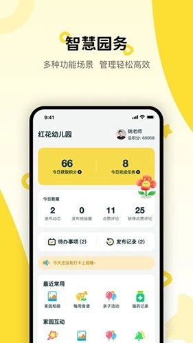1、粤宝贝园丁具备完善的园所管理功能,为幼儿安全提供保障。