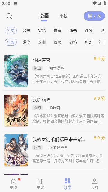1、打开多帆阅读进入书城页面后,可立即浏览平台提供的各类小说分类列表,也能直接搜索查找想要的小说。