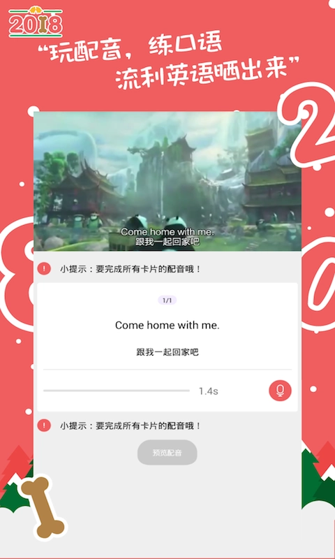 3.【全新学习模式】告别单调乏味的传统学习方法,借助配音来学习英语,同步提升口语与听力水平。系统会对配音进行打分,还能实时翻译生词,完成的作品也可以轻松分享,让你无论何时何地都能尽情享受配音的乐趣!
