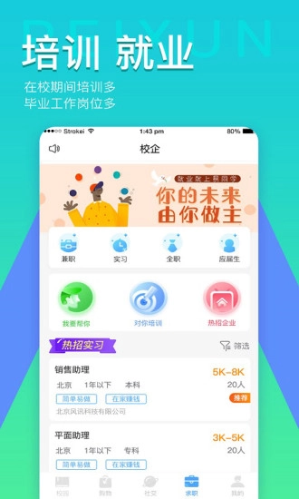 我们致力于构建一个智慧校园生态圈,在这里可以在线处理各类校园事务与校务工作;活动期间,你可以随时分享自己的动态心情;课余活动也能轻松参与;无论是在校兼职还是毕业后的工作岗位,都有丰富的选择。欢迎前来皮皮鲲站体验!