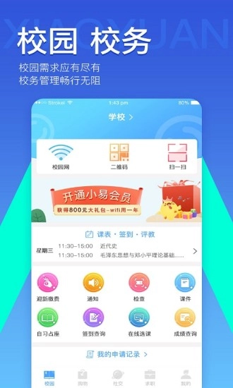 小易来帮你轻松搞定!校园网不再让人头疼,全校覆盖极速网络,成为最强王者不再是梦想!易同学只需一键登录校园WiFi,在校园里畅快上网,速度数你最快!