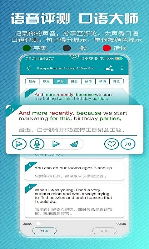 可以跟读新闻篇章,还能为你支持发音错误的单词;