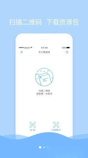 扫描图书获取听力资源、扫描答题卡获取分数;