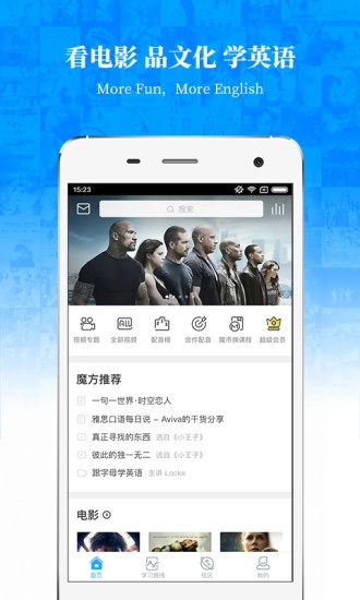 从1600万分钟的英文影视内容中精心筛选,保证素材地道鲜活;创新学习模式,深度讲解与针对性练习结合,通过4步系统提升英语水平。每日投入15分钟,借助观影进行英语学习,英语学习的乐趣将重新被点燃。