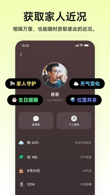 可以让用户在线查看家人的近况信息,随时掌握家人的最新动态。