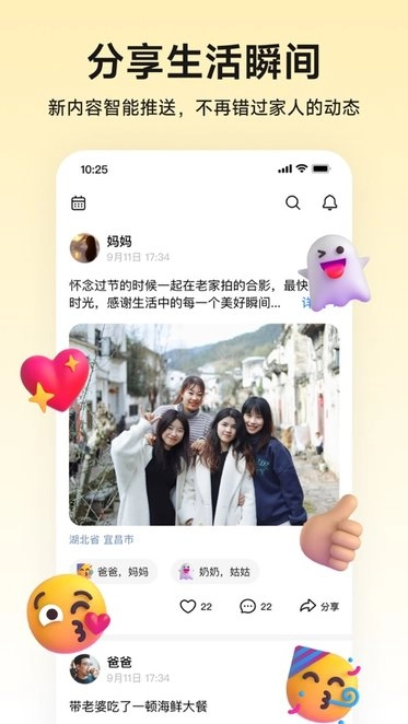 在家庭圈里,家人之间能够在线分享日常动态,彼此可以随时了解对方的实时情况。