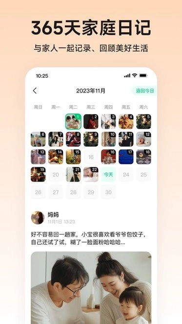 365天家庭日记,和家人一同记录、回味美好生活。系统会自动推送家人的最新动态,让你不再错过彼此的点滴,有效拉近情感距离。