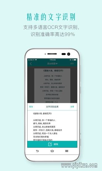 文本识别(OCR)——OCR(光学字符识别)能从单页里提取文本,以便进行后续编辑或分享。(此功能仅适用于付费应用程序)