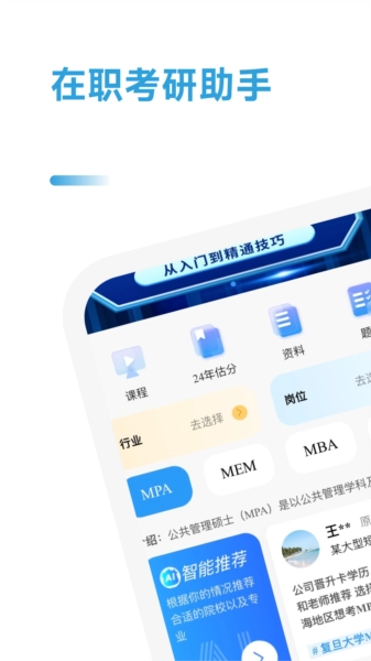在职考研助手是一款功能完备的在线教育应用,为在职考研群体打造了便捷高效的学习平台。不管是备战MBA,还是提升管理经营能力,这款应用都能契合用户的需求。借助智能推荐、名师课程以及丰富的题库资源,用户能够轻松提高自身的学习效率与水平。总的来说,在职考研助手是一款值得推荐的教育类应用。