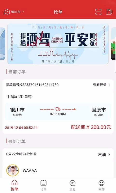定位城市后,就能获取该城市客户发布的物流订单,之后就可以抢单了。