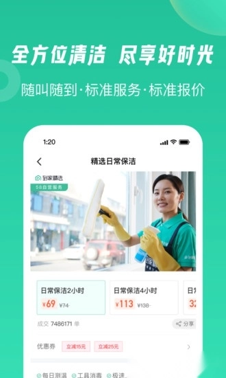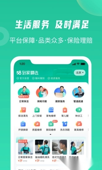 【服务丰富】保洁保姆、清洗维修、搬家换锁,58到家一站式解决;