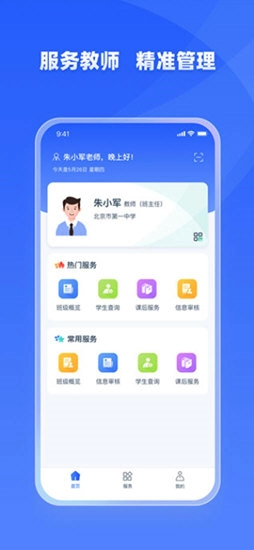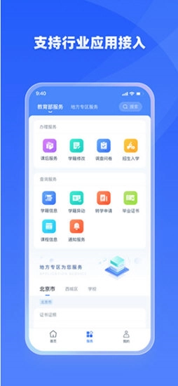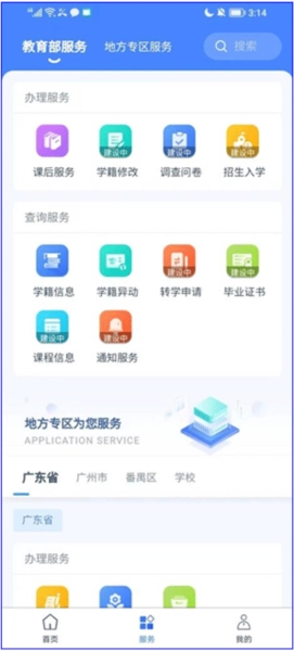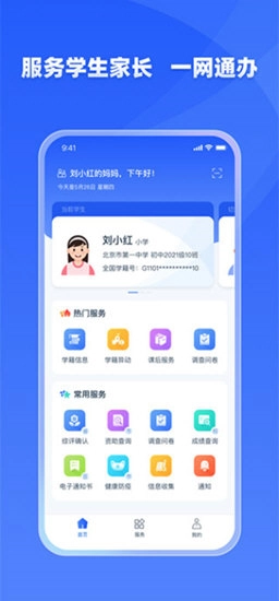4、家长可在服务中心,访问当前切换孩子身份后的应用服务,比如查询学籍、查询异动、课后服务等,还能通过应用搜索功能快速找到想要使用的应用服务。