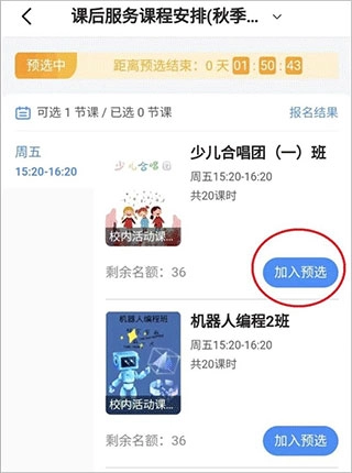 预选结束后,要是某门课程的预选人数超出了该课程的报名人数上限,那么家长就需要在报名阶段手动去报名这门课程。在预选期间,家长能够实时查看课程的预选人数有没有达到上限,所以建议家长根据自身需求实时调整预报名的课程清单。