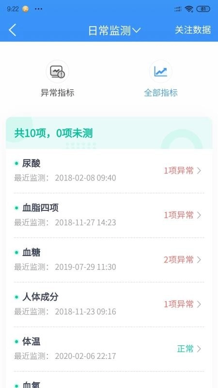 日常进行健康项目监测,能够及时掌握每个健康项目的具体状态。