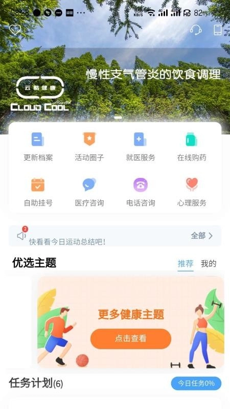 4、可享受就医相关服务,比如在线购药、医疗咨询,还能更新健康档案,完成任务计划。