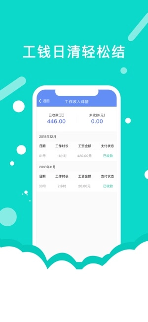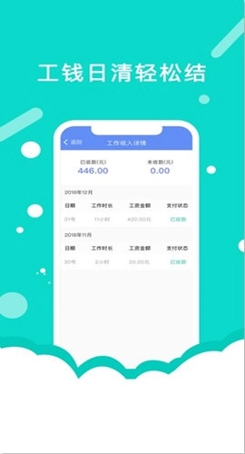 工资结算灵活便捷:一键生成工资表,查询清晰明了,支持日结、月结、一对一、一对多等多种结算形式。
