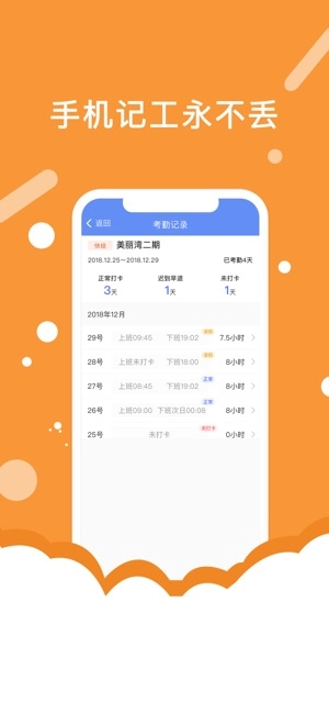 便捷化移动管理:工资明细、考勤记录、项目数量、工人人数、财务数据等支持实时统计,可随时自主查询。