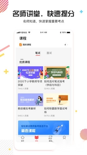 4、从笔试到面试,从能力提升到成功入职,涵盖教师资格证相关的各类课程与资料。