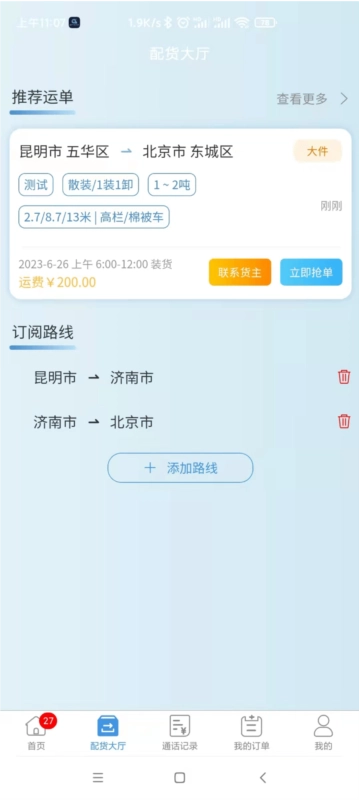 3、司机只需在应用上注册账号,就能不受时间地点限制查看订单,并挑选合适的订单接单。