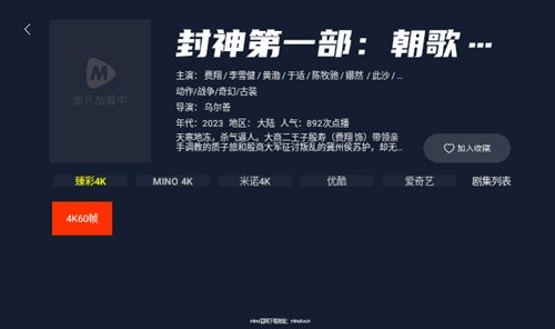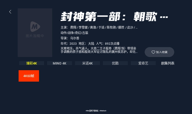 1、MINO4K资源全,你想看的影视资源全都有。