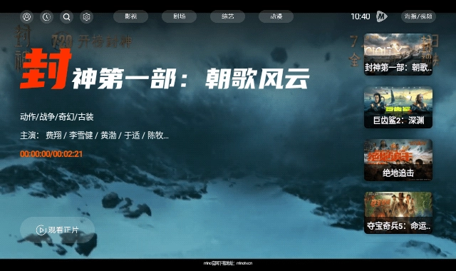 MINO4K电视版是一款超实用的电视追剧工具。它能在线提供各类优质影视资源,支持4K高清画质与流畅播放服务,凭借高质量视频资源和流畅播放体验,无论是在电视、平板等设备上观看影视作品,都能享受到清晰画面与流畅播放效果,全面提升观影体验。