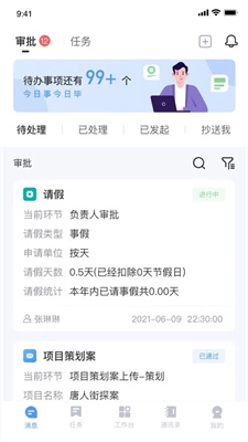 实时处理审批流程、接收新派任务。让我们以轻自律的模式,把控好每一项小任务,逐步实现宏大目标。