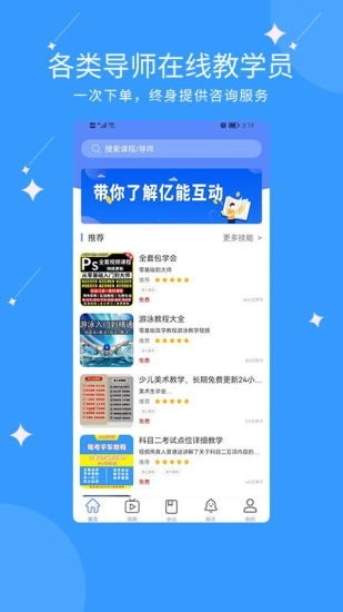 师徒系统:无论你掌握哪门专业技能,都能在平台申请导师认证,经大数据审核通过后,平台会协助你发布信息,吸引更多学员拜师学艺。