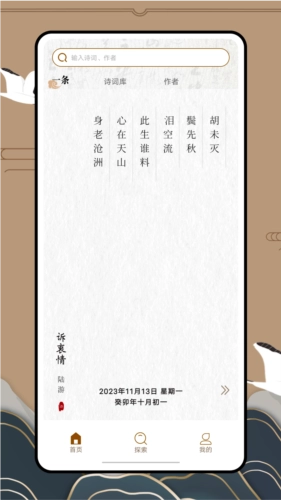文晓生是一款相当出色的诗词赏析阅读学习软件,功能十分全面,收录了海量不同类型的诗词,像唐诗、宋词等经典作品都有涵盖。用户可以随时随地利用这款软件学习诗词,而且软件提供多种阅读界面模式可供选择。另外,在学习过程中,用户还能精准详细地了解每首诗词的注释、译文和赏析内容,从而更轻松地掌握每一首诗词,是大家学习诗词的得力助手。