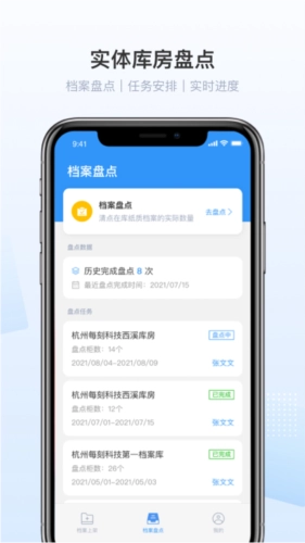 4、盘点任务:每刻档案为工作人员提供档案盘点任务,以便工作人员及时了解自身的工作任务。