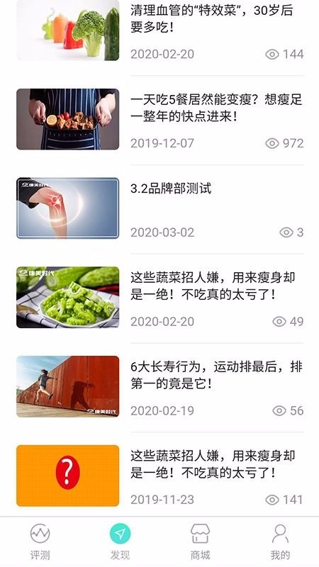 1、启动软件后,进入“发现”界面,就能浏览健康、瘦身等不同类别的资讯文章。