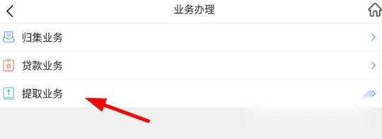 1、进入“业务办理”界面后,点击“提取业务”选项,即可在此完成公积金的领取操作。