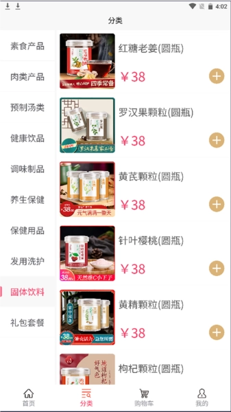 打开分类界面,查看所有产品的分类信息,同时查找优质产品。