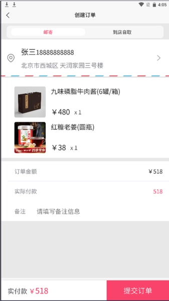 在线提交购物订单前,需先完善收货地址并支付商品购买费用。