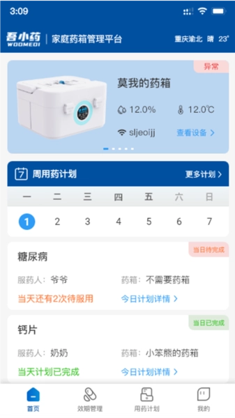 吾小药药箱管理平台聚焦家庭个人、医药零售及医疗机构的智能药品存储与存取场景,致力于为用户打造全维度的药品管理服务。通过简洁易用的界面设计,用户能便捷查询药箱内的药品信息。无论是普通家庭日常用药管理,还是专业医疗机构的药品存取需求,吾小药都可适配多样化场景。除基础的药品查询功能外,平台还配备了完善的用药计划管理模块,用户可根据自身需求设置个性化提醒,保障服药的及时性与规律性。