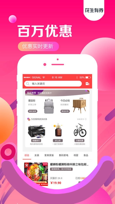 花生有券是一款十分划算的网购应用,平台上汇聚了各类优质商品,所有商品都经过严格的审核流程,品质安全有保障。平台每日都会推送海量优惠券,采用先领券再使用、自动抵扣的方式,助力用户轻松省钱。此外,还有功能强大的优惠券列表,为用户提供更多消费参考。