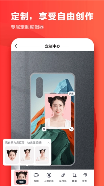 定制服务类型丰富多样:用户能够挑选衣服、手机壳等多种物品来进行个性化定制。