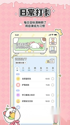 米卡日常是一款主打可爱风格的生活记录应用,核心目标是让用户能简单便捷地留存日常点滴。在这里写日记,那些无处倾诉的私密心事都能安心记录,所有内容仅对用户本人可见。它的桌面小组件设计很贴心,既能装点桌面,又能让重要信息在壁纸界面直接显示,无需打开软件就能查看;还有超萌的个性标签,为记录增添不少趣味。 除了记录功能,软件的番茄钟是一大亮点——它能帮助用户集中注意力,无论是定时锻炼、每日阅读还是规律作息,都能通过番茄钟提升效率。目标追踪功能则支持用户设定清晰目标并实时跟进进度。更有趣的是云养宠玩法:只要登录并创建计划,就能领取专属小狗;完成计划目标还能获得狗粮,一步步升级为高级饲养员,期间还能给狗窝搭配各种精致装扮。在培养自律习惯的过程中有小狗陪伴,是不是瞬间觉得温暖又有动力,再也不会孤单啦?