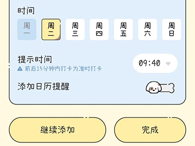 3、选择时间周期,选择提示时间,点击完成即可。