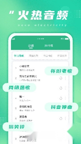 1、多多省电覆盖了网络热歌、怀旧老歌以及抖音神曲等各类音乐,能满足不同人群的需求;