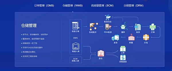 多平台多店铺库存同步、第三方仓储管理、库存盘点与调拨、库存修正、箱与仓位库存管理、销售出库单管理、拣货批次管理、拣货路径优化、越库直发、手持PDA全仓无纸化作业、员工绩效考核