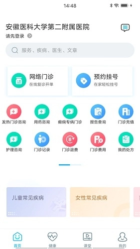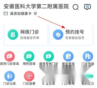 1、进入安医大二附院的主页面,点击“网络门诊”。