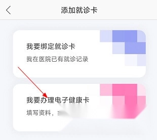 2、接着选择“我要办理电子健康卡”。