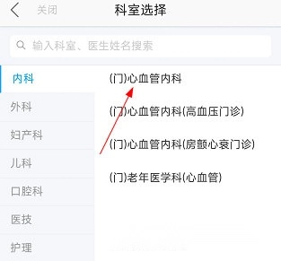2、然后选择要就诊的科室。