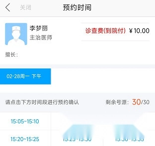 2、预约挂号:编辑个人信息,选择就诊时间,即可完成在线预约挂号。